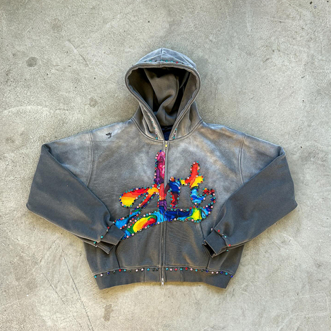 कस्टम ग्रेडिएंट एसिड पत्थरों को धुलाई हुई हूडी बोक्सी ओवरसाइज ज़िप अप पल्लोवर स्वेटशर्ट